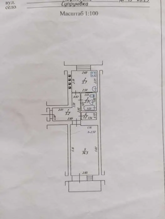 * загальна площа - 38 кв.м, кімната - 14 кв.м., кухня - 9 кв.м;