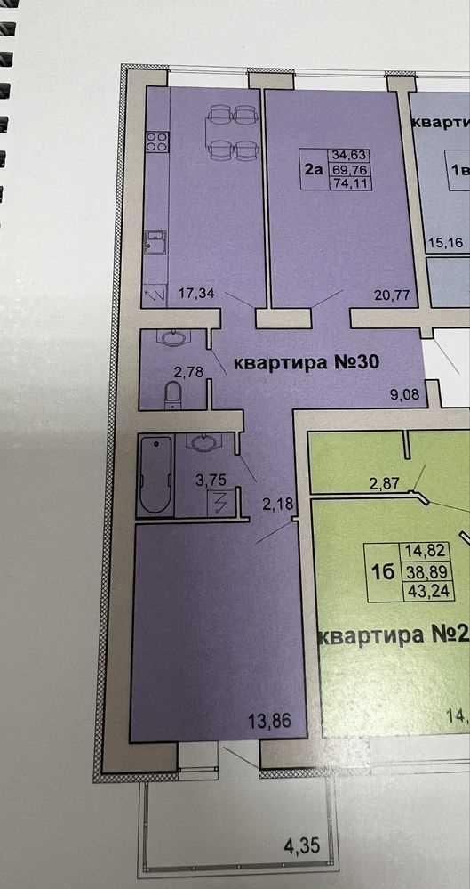 - Загальна площа: 68,2 кв. м, житлова: 34 кв. м, кухня: 10,7 кв. м