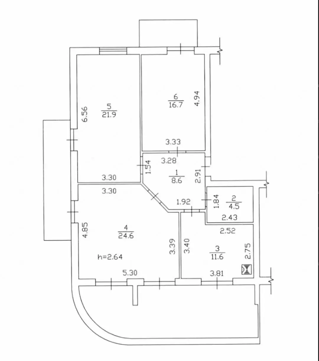 * Загальна площа 60 кв.м, кухня 7 кв.м;