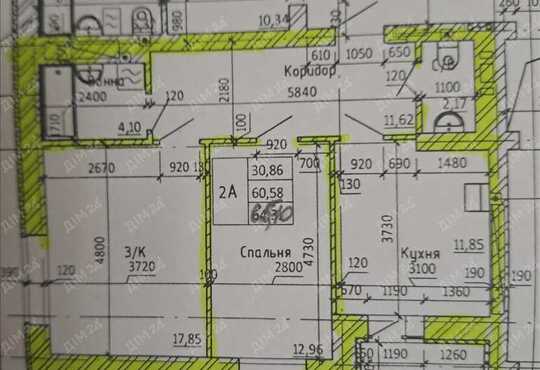 Загальна площа 65 м2, велика кухня 12 м2.