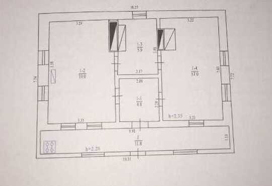 * Загальна площа 58,5 кв.м, дві окремі кімнати 17 та 19 кв.м, кухня 6 кв.м та галерея.