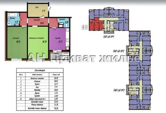 Общая площадь 80 кв.м, застекленный балкон с выходом из кухни.