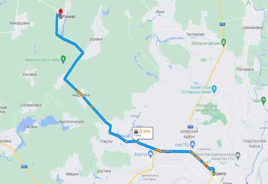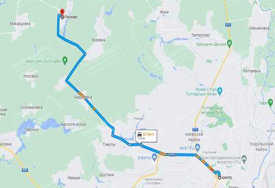 19 км від центру Полтави.
