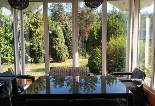 * Локація: річка та пляж - 2 хвилини, ліс позаду ділянки;