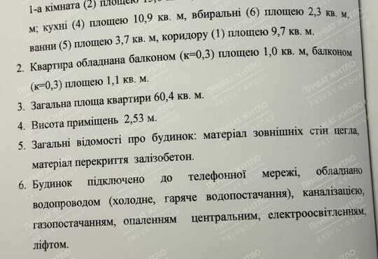 * загальна площа - 60,4 кв.м, кухня - 10,9 кв.м;