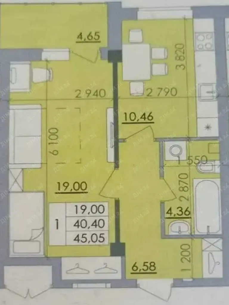 Загальна площа — 44 м.кв