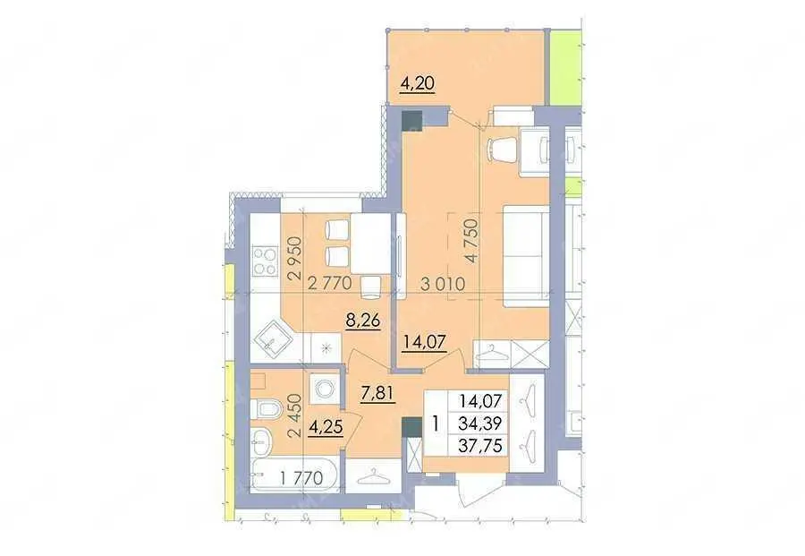 * Кухня 14 м2 — простора, функціональна, ідеальна для приготування улюблених страв та затишних зустрічей із близькими.